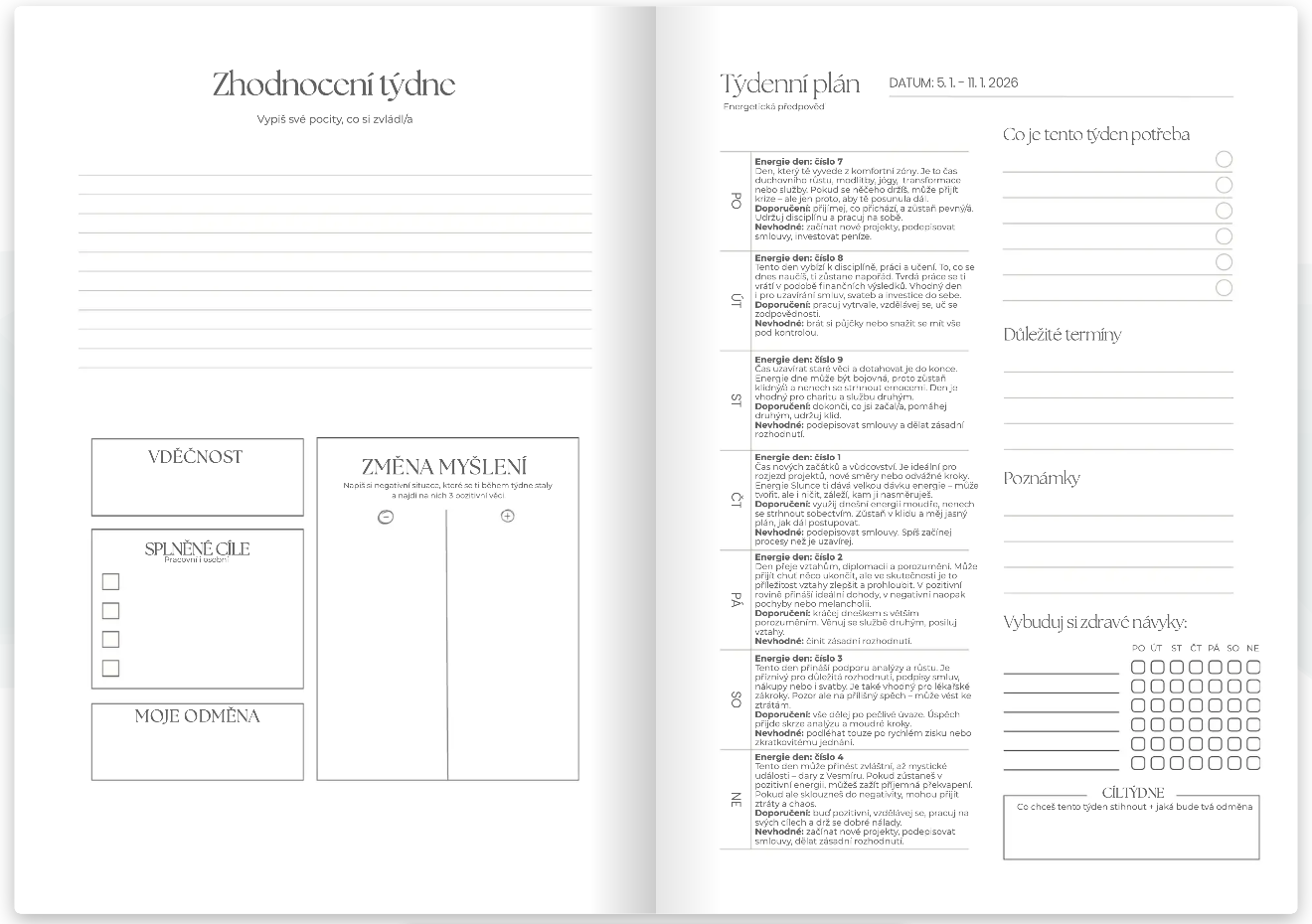 První diář, který respektuje energii čísel podle Digitální Psychologie.